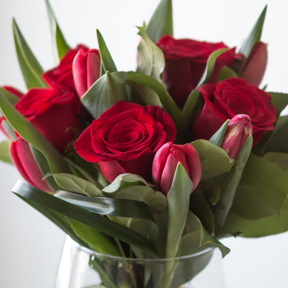 Inspired by Clara Zetkin, the pioneering activist who proposed March 8th as International Women’s Day, the Clara's Bouquet is a tribute to love, strength, and empowerment. This charming arrangement features a stunning mix of roses, delicate tulips, and fresh greenery, elegantly arranged in a beautiful glass vase.