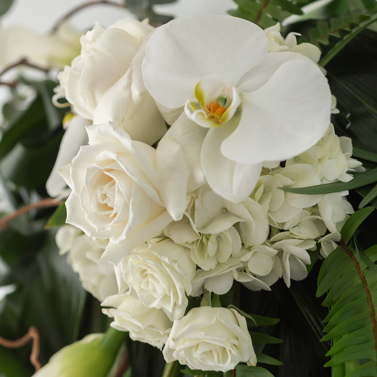 Le "Cœur Inoubliable" de Le Bouquet Montréal est un hommage funéraire raffiné et gracieux, conçu pour exprimer l'amour éternel et le souvenir. Mesurant 22 pouces, cet élégant arrangement en forme de cœur est composé de roses blanches, d'orchidées, d'arums et de feuillage luxuriant, créant un affichage serein et sincère. Il partage un design similaire avec la "Croix Inoubliable" et la "Couronne Inoubliable," offrant une collection d'hommages cohérente et pleine de sens. Idéal pour exprimer des condoléances, ce cœur floral est un moyen magnifique d'honorer un être cher.